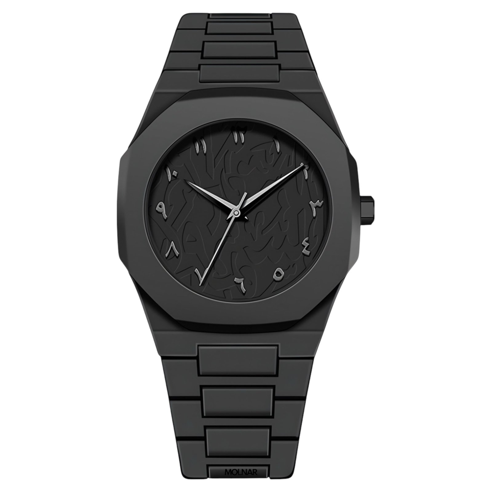 Bold in presence, light in weight the Envoro Engraved features a durable black polycarbonate case paired with a dial available in deep black or striking red. Subtle engraved textures bring depth to the face, while refined Arabic numerals add a touch of timeless character. Designed to stand out through detail, this watch blends modern materials with classic influence.