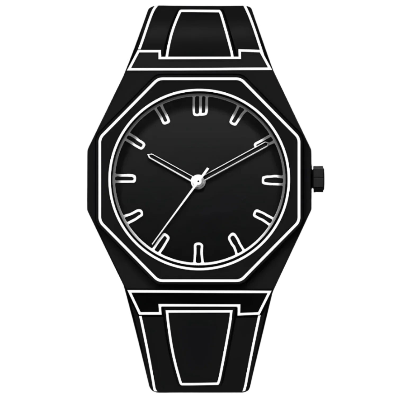 Striking in form and built for performance, the Envoro 3D features a bold 3D-inspired design in a crisp black and white palette. Its rubber strap offers flexibility and comfort, while the dial’s layered depth adds a sense of movement and modern edge. Water-resistant and powered by a precise Japanese movement, this watch is designed to stand out from every angle.
